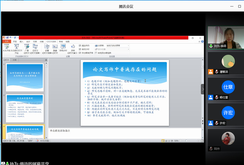 本次论坛上,苗盈盈、孙为、刘雪娟、王鑫蕊、胡业爽、陆持6位同学依次发言,分享了自己的科研成果及学位论文的写作经验。