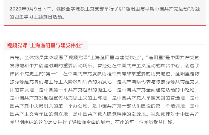 “四史”专题学习——“渔阳里与早期中国共产党运动”