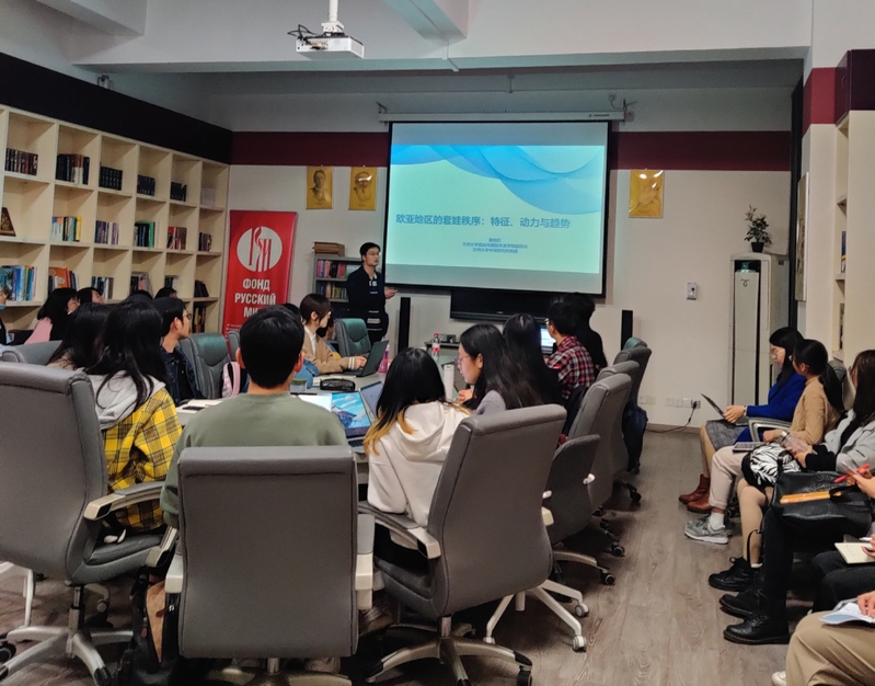 应上海外国语大学俄罗斯东欧中亚学院邀请,2020年11月2日,兰州大学曾向红教授在学院俄语中心为广大师生举办了一场题为“欧亚地区的套娃秩序:特征、动力与趋势”的讲座。讲座由学院中亚语系主任吴爱荣副教授主持。