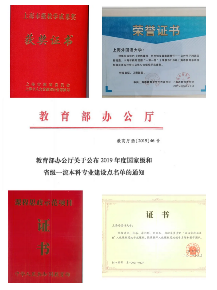 为配合学校在关键性非通用语种领域的战略布局,学院在之前仅有俄语、乌克兰语两个专业的基础上,近5年又新增了匈牙利语、波兰语、哈萨克语、乌兹别克语、捷克语、塞尔维亚语、罗马尼亚语等7个非通用语种专业,首届匈牙利语、波兰语、哈萨克语专业学生就业率均达100%,均有学生入职于外交部。为培养具有全球话语能力的卓越“多语种+”人才,学院对专业课程设置做出相应调整。在语言技能课和专业知识课的课时数不低于专业总课时50%的前提下,增设语言学、文学、国别与区域研究等模块课程。作为学校最早开展课程思政的试点单位之一,学院构建了纵横交错特色显明的课程思政链体系。2018年建设的4门课程思政校级精品课程和9门一般课程均已结项;2019年学院获批上海市课程思政重点改革领航学院,俄语、中东欧中亚语获批上海市课程思政特色改革领航团队,19门课程获批上海高校课程思政精品改革领航课程;2020年学院建成俄语课程思政“课程链” ,实现了课程思政教育教学改革在全专业、全过程、全体学生的“三全覆盖”。“基础俄语Ⅳ”课程思政教学设计入选上海市学生德育发展中心《课程思政—教学设计选编》,形成可复制、可推广的制度经验和有广度、有深度的建设成果,真正发挥出领航示范作用;院长许宏教授所主持的课程《俄语实践语法》2020年获首批国家级一流本科课程,2021年获国家课程思政示范课程、课程思政教学名师和团队。