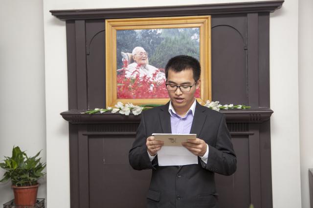 马涛、何洋洋、李志力和沈璐璐同学分别朗诵了巴金作品选段的阿拉伯语、俄语、西班牙语和日语翻译文本,表达了对巴金先生的怀念与敬意。(陈晓黎)