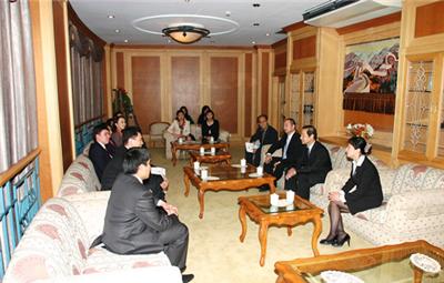 曹德明向客人介绍了我校近年来取得的发展成就。近几年来,我校与哈萨克斯坦之间的教育与文化合作也日益加强,目前有100多名来自哈萨克斯坦的留学生在我校学习和交流,涵盖了汉语教育、英语、经济等诸多专业领域。同时,我校依托本校的国际关系与外交事务研究院、俄语系和中亚研究中心开展中亚问题研究,其中对哈萨克斯坦的研究占据重要地位,拟建立的“哈萨克斯坦研究中心”将以教学和学术研究为基础,促进学术交流,成为推动中哈两国教育和文化合作的平台。