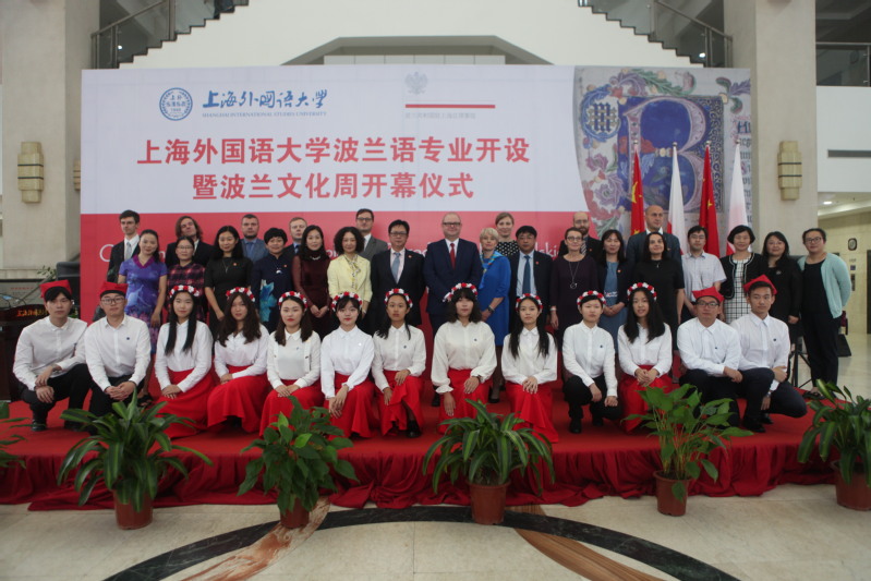 10月11日,上海首个波兰语专业开设仪式暨波兰文化周开幕式在上海外国语大学举行。波兰共和国驻上海总领馆总领事皮欧特·诺沃特尼亚科(Piotr Nowotniak)、副总领事安娜·罗姆希茨卡(Anna Romsicka)、上海市人民政府外事办公室欧非处副处长励仿夏、中波轮船有限公司副总经理静涛、上海外国语大学校长李岩松、副校长周承等嘉宾出席仪式。
