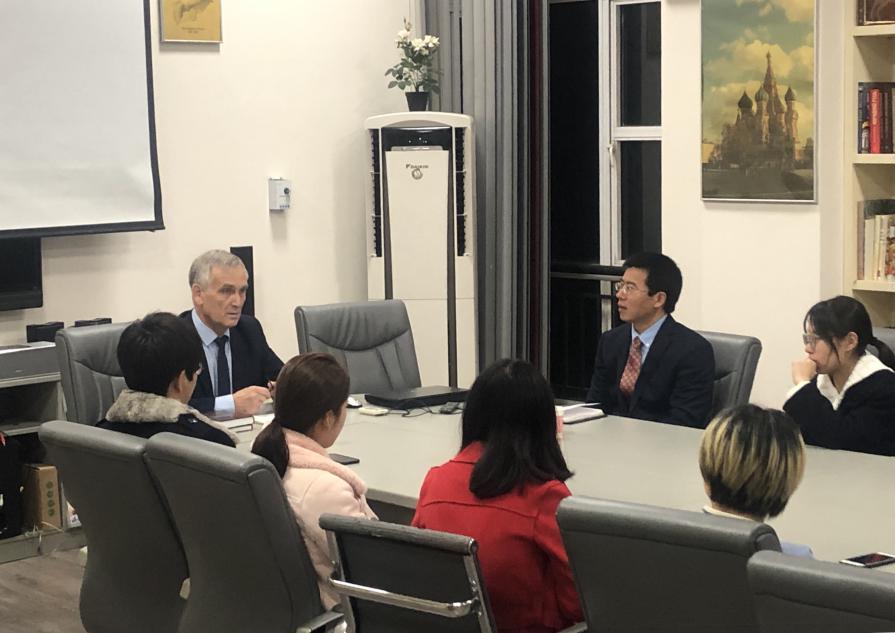 应上海外国语大学俄罗斯东欧中亚学院邀请,2019年3月28日晚间,俄罗斯作家亚·米·谢苗诺夫在学院俄语中心为广大师生举办了一场题为“当代俄罗斯文学”的学术讲座。讲座由学院副院长杨仕章教授主持。