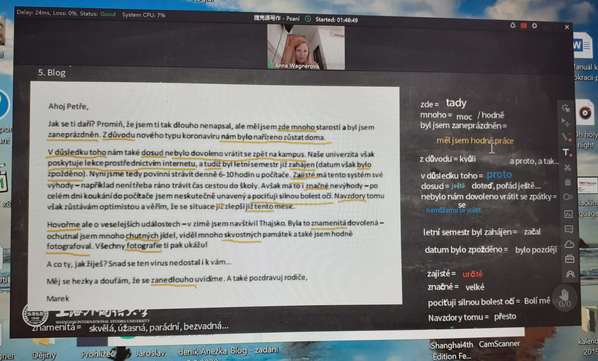 Pro mnoho z nás je to úplně nová zkušenost. Převést během krátkého času všechny předměty do online podoby je jistě výzva, obzvlášť pokud jde o výuku jazyků. Navíc všechny naše učebnice a další knihy zůstaly v Šanghaji.